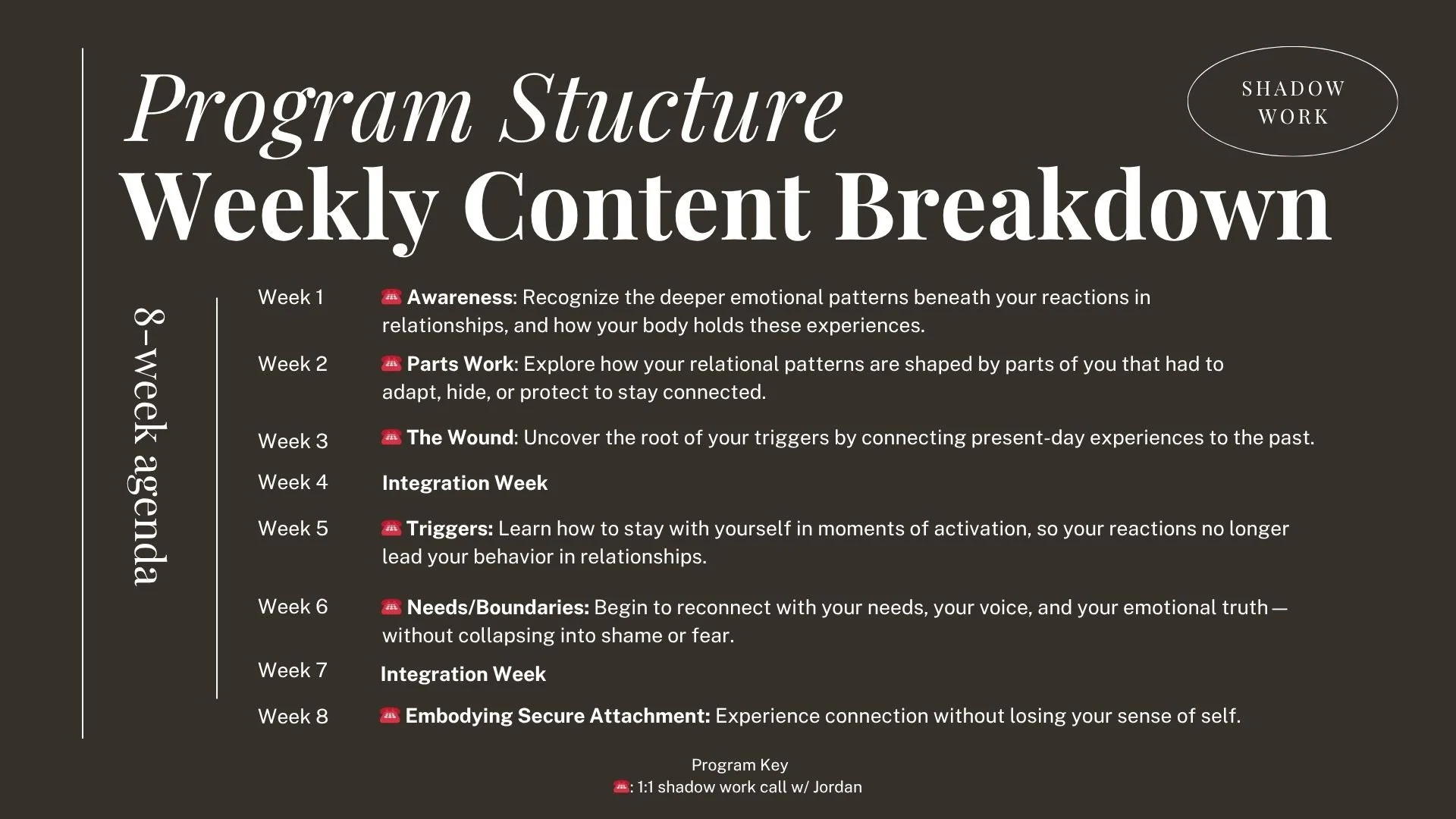 6× 90-minute Shadow Work Sessionsw/ Jordan: held on Google Meets, available Mon - Fri, 9 am - 6 pm CST.
